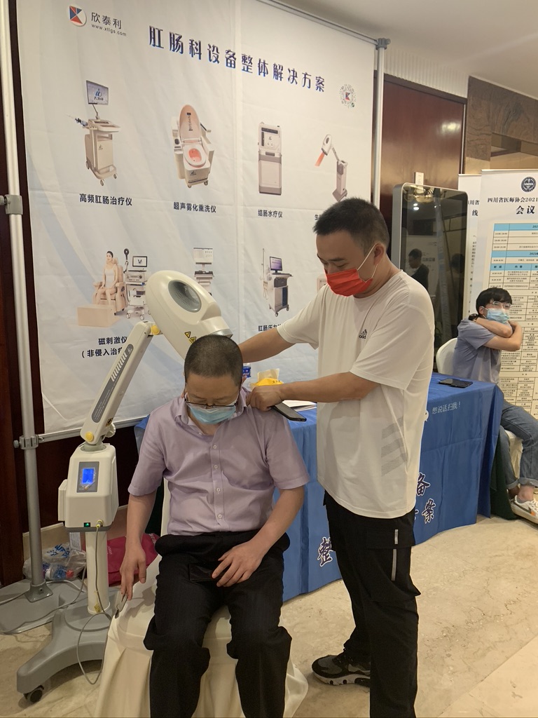 四川欣泰利电子科技有限公司在此次会议上也展示了肛肠内窥镜检查系统、肛周熏洗仪、雀啄灸、磁刺激治疗仪,邀请各专家现场体验,受到了业内专家的好评。